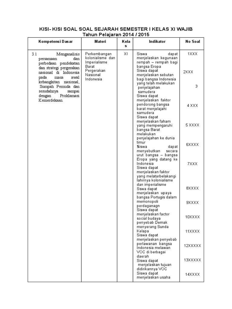 Kisi Kisi Soal Soal Sejarah Semester I Kelas Xi Wajib